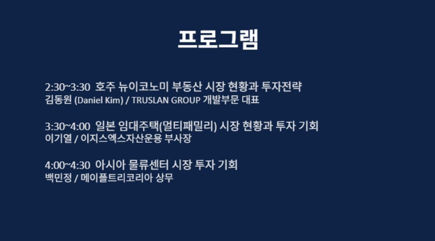15:30~16:00 | 일본 임대주택(멀티패밀리)시장 현황과 투자 기회